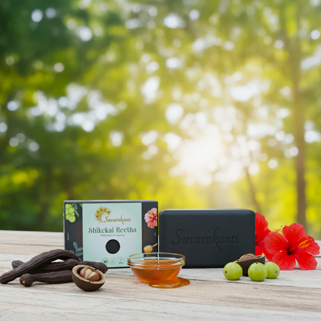 Suvarnkanti Shikakai Reetha Soap is crafted using age-old herbal ingredients known for cleansing and nourishing the skin. Mild, chemical-free, and ideal for sensitive skin.